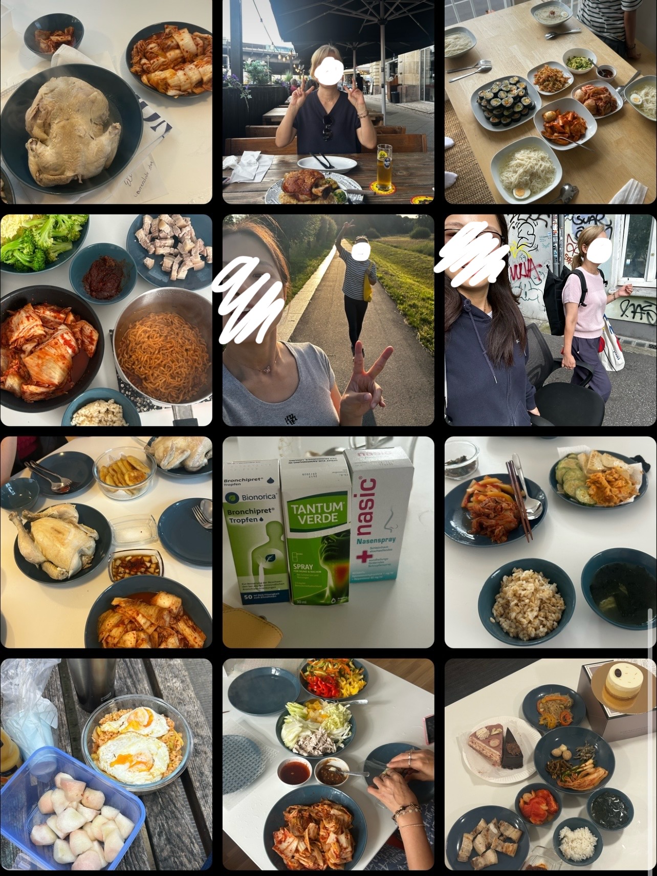 엄마 덕분에 한식도 엄청 먹었다. 재택할 때마다 오셔서 좋아하는 반찬으로 점심을 차려주시고, 내 친구들을 불러 서너번 저녁을 차려주시기도 했다. 아플때는 삼계탕도 해주셨다. 언어가 잘 통하지 않아 힘드셨을텐데 직접 약국에서 내 증상에 맞는 약을 사와주신 것도 무지 감동이었다. 항상 김치를 사먹어야해서 돈이 많이 들었는데, 내 친구들과 함께 대규모 김장을 해주고 가셔서 4개월 넘게 엄마가 만든 김치로 먹고 살았다. ㅎㅎ 이사도 도와주시고 의자나 자전거와 같이 부피가 있는 중고거래 할때도 같이 가주셨다.