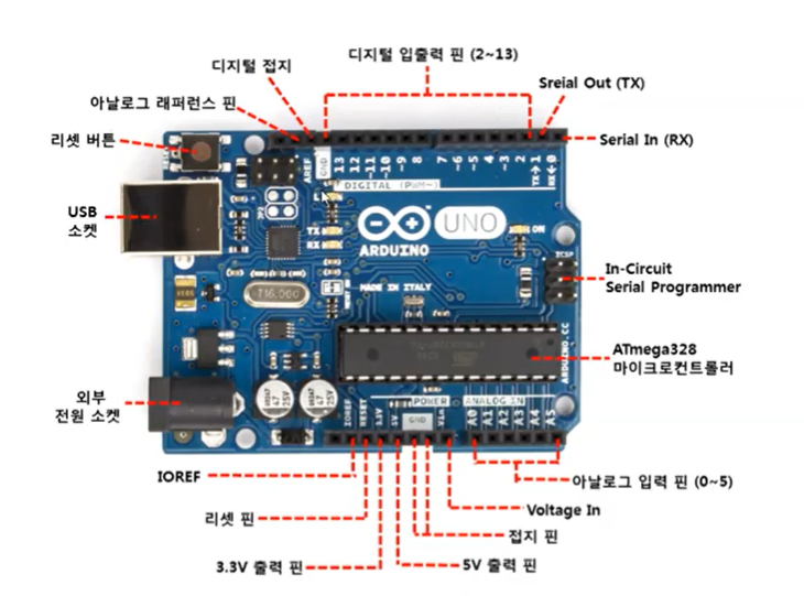 아두이노 보드 내의 디지털 및 아날로그 신호를 처리하는 과정도 간략하게 설명해주심.
